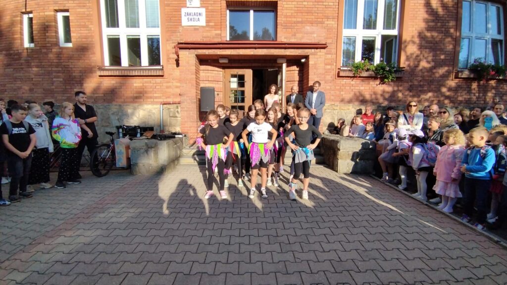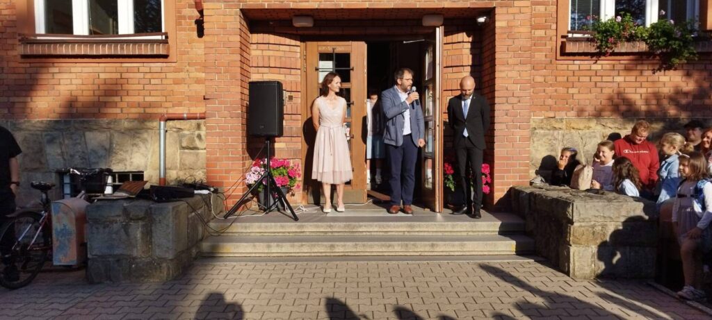 Jako každoročně jsme se i dnes všichni sešli před školou. Přivítal nás pan ředitel Pavel Resler a starosta města Radim Vetchý. Slavnostní ráno zpestřil svým vystoupením taneční soubor Sluníčko. Poté jsme vyvěsili školní vlajku – symbol toho, že pro úspěšné vzdělávání našich žáků je důležitá spolupráce školy, rodičů i žáků samotných.